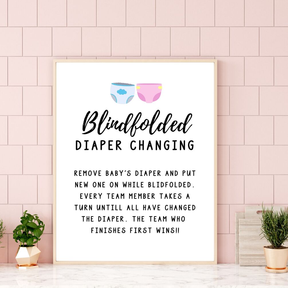 This game is easy to play, and all you need is a table sign, dummy baby dolls, a diaper, and blindfolds.